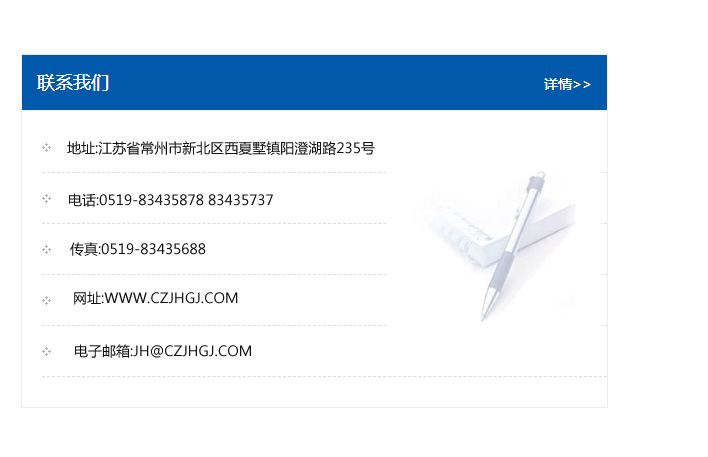 地址:常州市新北區友邦商務大廈1幢16、17層  電話:0519-85101652  傳真:0519-85112595  郵編:213022  網址:www_cz-jiayue_cn.cn-shanhe.com  郵箱:xiajifengaa@163.com